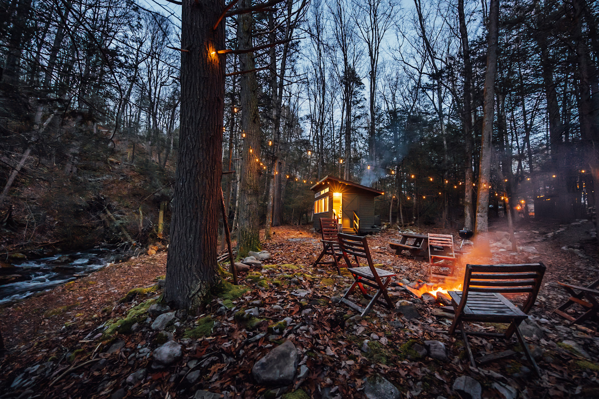 The cabin is approx. 10 minutes from the Otisville Train Station, which is about 2 hours from Penn Station.